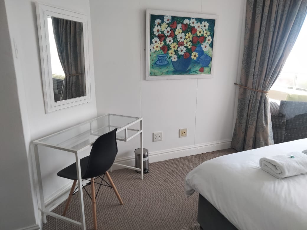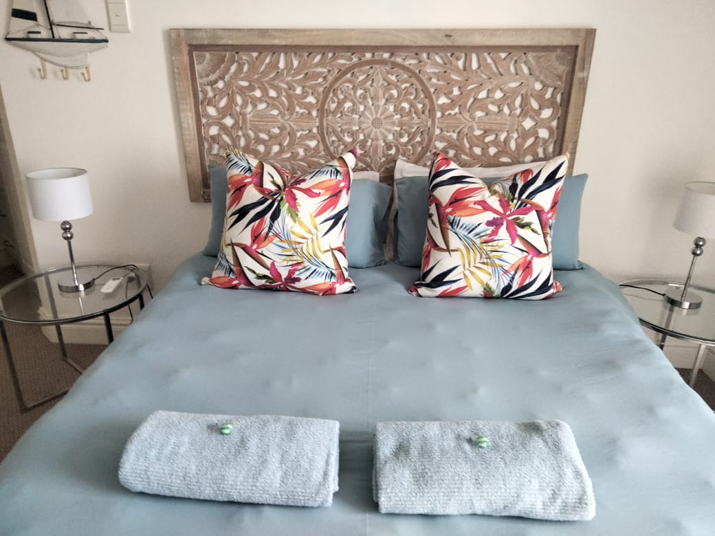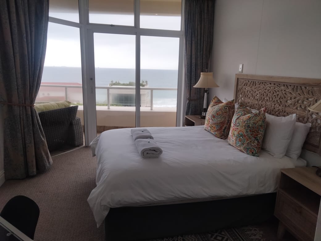 The kitchen is equipped with a fridge-freezer, stove, oven, microwave, washing machine, tumble dryer, and dishwasher. In the open-plan living area, guests will find a 6-seater dining table, a comfy lounge suite, and a TV with DStv and wifi. The living area opens onto a balcony with gas braai facilities and an outdoor seating area, where one can enjoy the beautiful views of the Indian ocean.