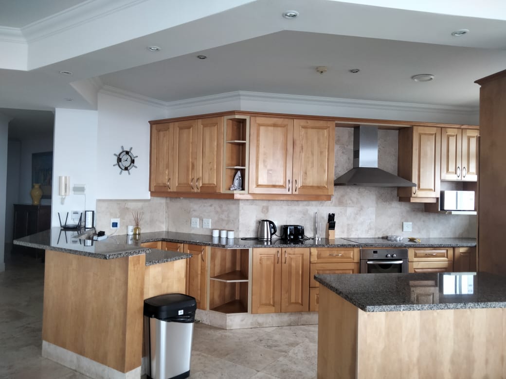This air-conditioned apartment can accommodate 6 guests and comprises 3 bedrooms. The main bedroom is furnished with a double bed and its en-suite bathroom is fitted with a bath and shower. The second bedroom contains a double bed, the third bedroom has a double bed. These rooms share the use of a separate bathroom fitted with a shower for guests’ convenience.