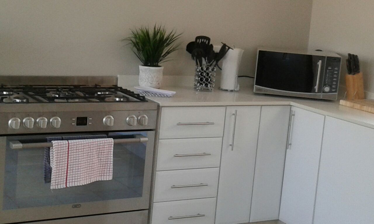 There is also a guest toilet downstairs for convenience. From the secure verandah, guests can sit and watch the children or pets play in the garden and swimming pool, while making use of the built-in braai facilities next to the patio.